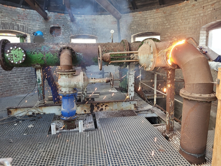 Rozpoczęcie prac remontowych istniejących obiektów budynku technicznego ob. 8 i budynku rozdzielni ob. 9 w zakresie wykonania izolacji termicznej oraz izolacji pionowej ścian fundamentowych. Demontaż starego zadaszenia budynku technicznego i montaż nowego.