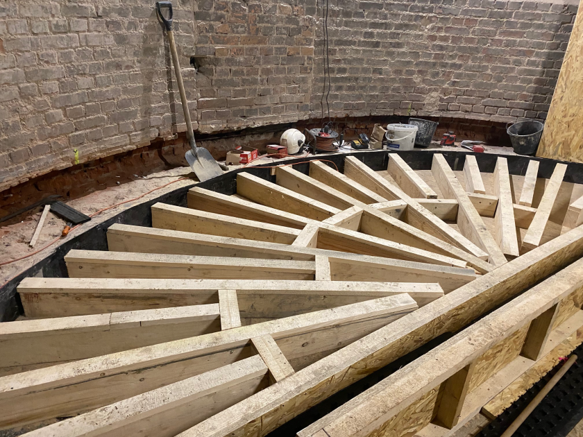 Budowanie pierwszej części ścian kraty mechanicznej.
