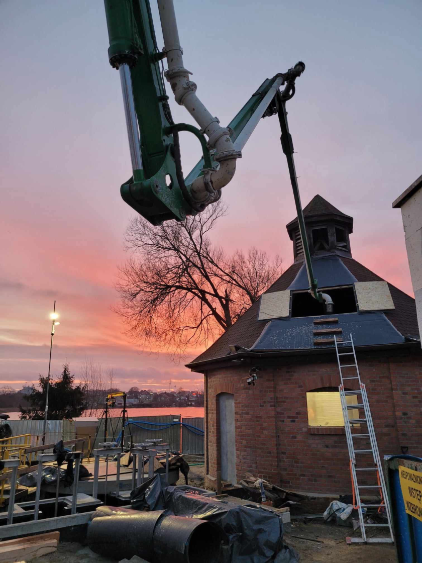 Wykonano w piaskowniku wirowym Ob. 3 warstwę nadbetonu oraz górną płytę pokrywową, wraz z wykładzinami chemoodpornymi w postaci płyt PE co zakończyło prace konstrukcyjne w tym obiekcie.