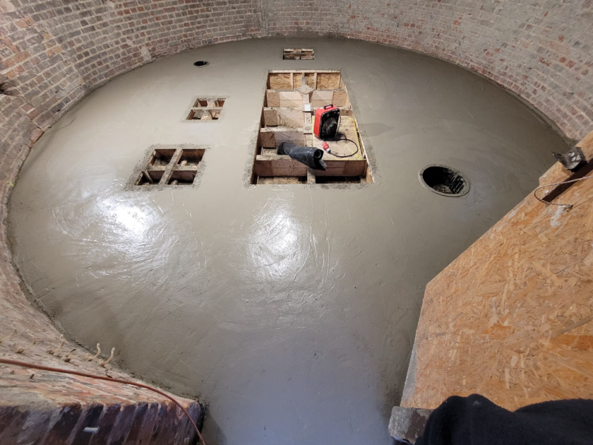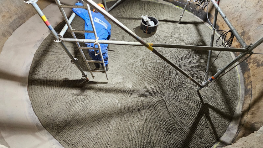 Wykonano w piaskowniku wirowym Ob. 3 warstwę nadbetonu oraz górną płytę pokrywową, wraz z wykładzinami chemoodpornymi w postaci płyt PE co zakończyło prace konstrukcyjne w tym obiekcie.