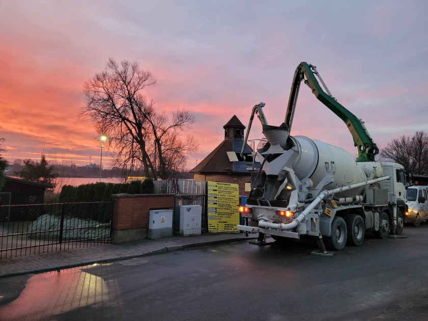 betonowanie dna, żelbetową płytę denną pompowni oraz betonowanie skosów;